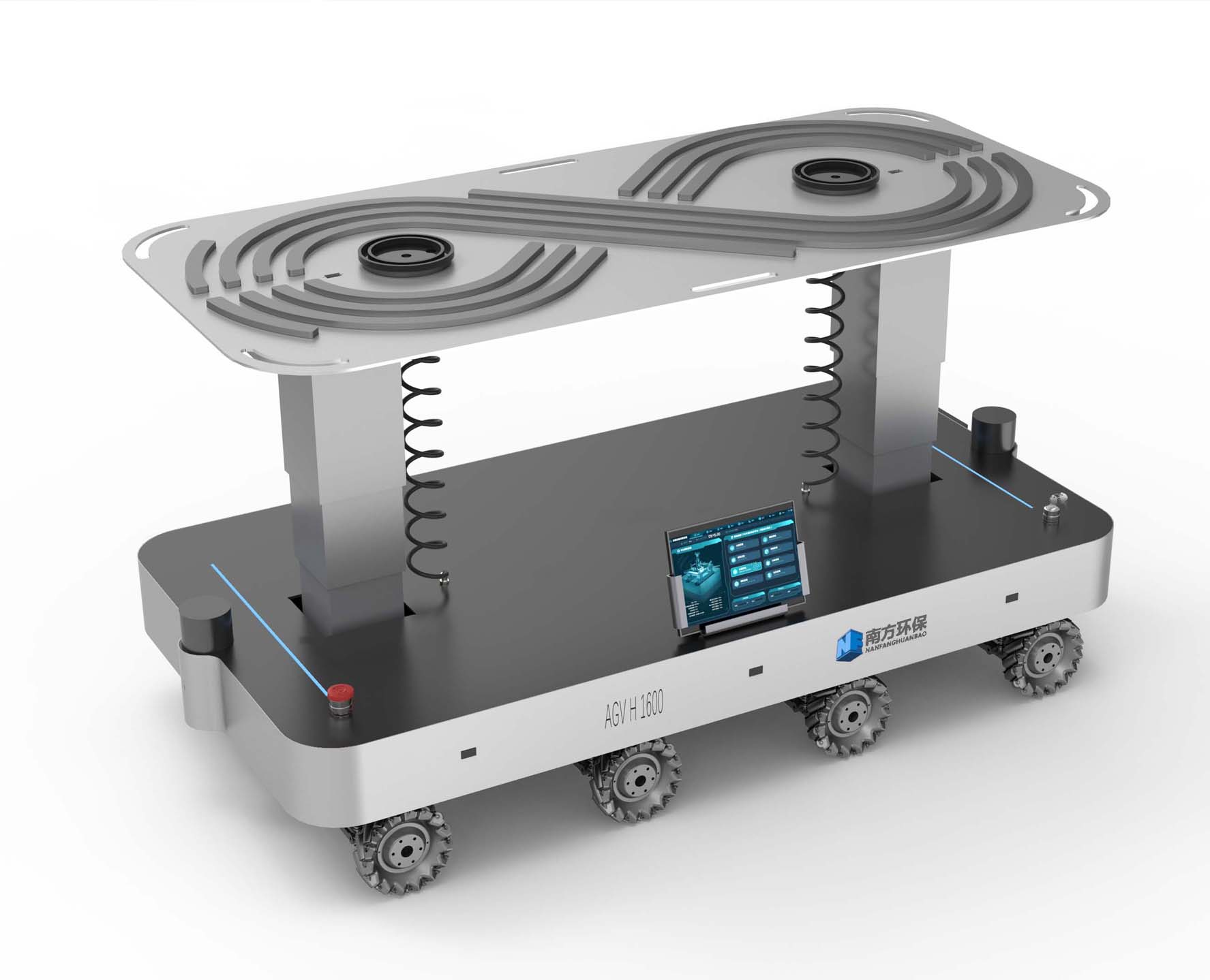 The Lingzhou-1 AGV Robot for transporting remains is equipped with multiple systems, all coordinated by a central control unit. These include 1) the navigation system, 2) the mobile platform, 3) the lifting platform, 4) the vacuum adsorption system, 5) the adjustable touchscreen interface, and 6) the battery system. The overall structure and configuration are outlined as follows: